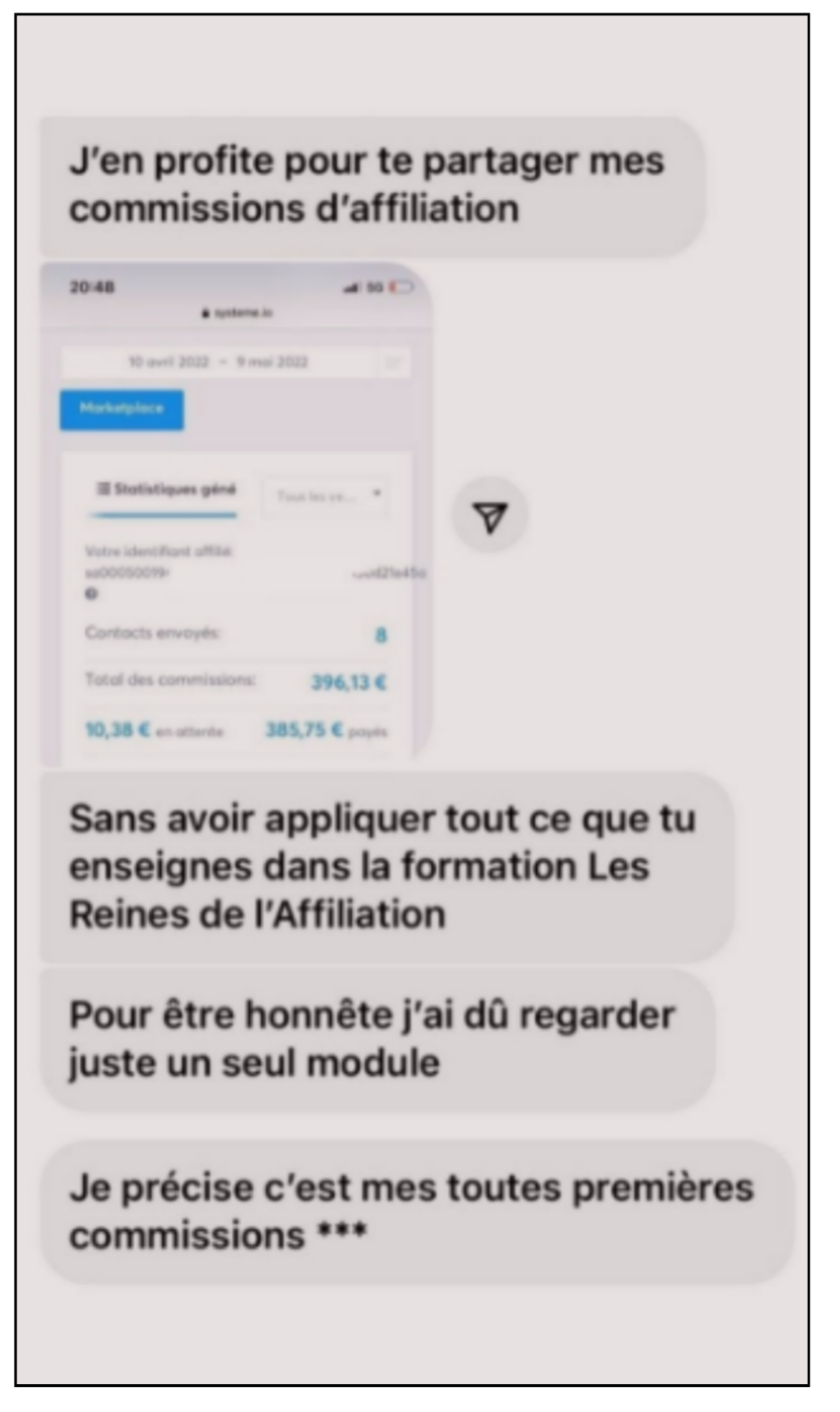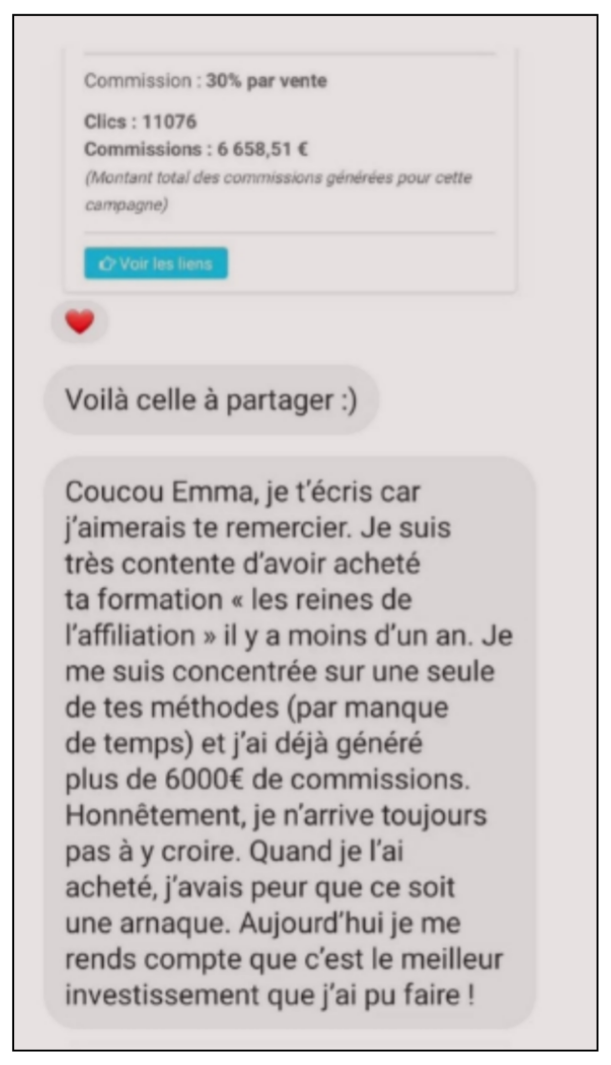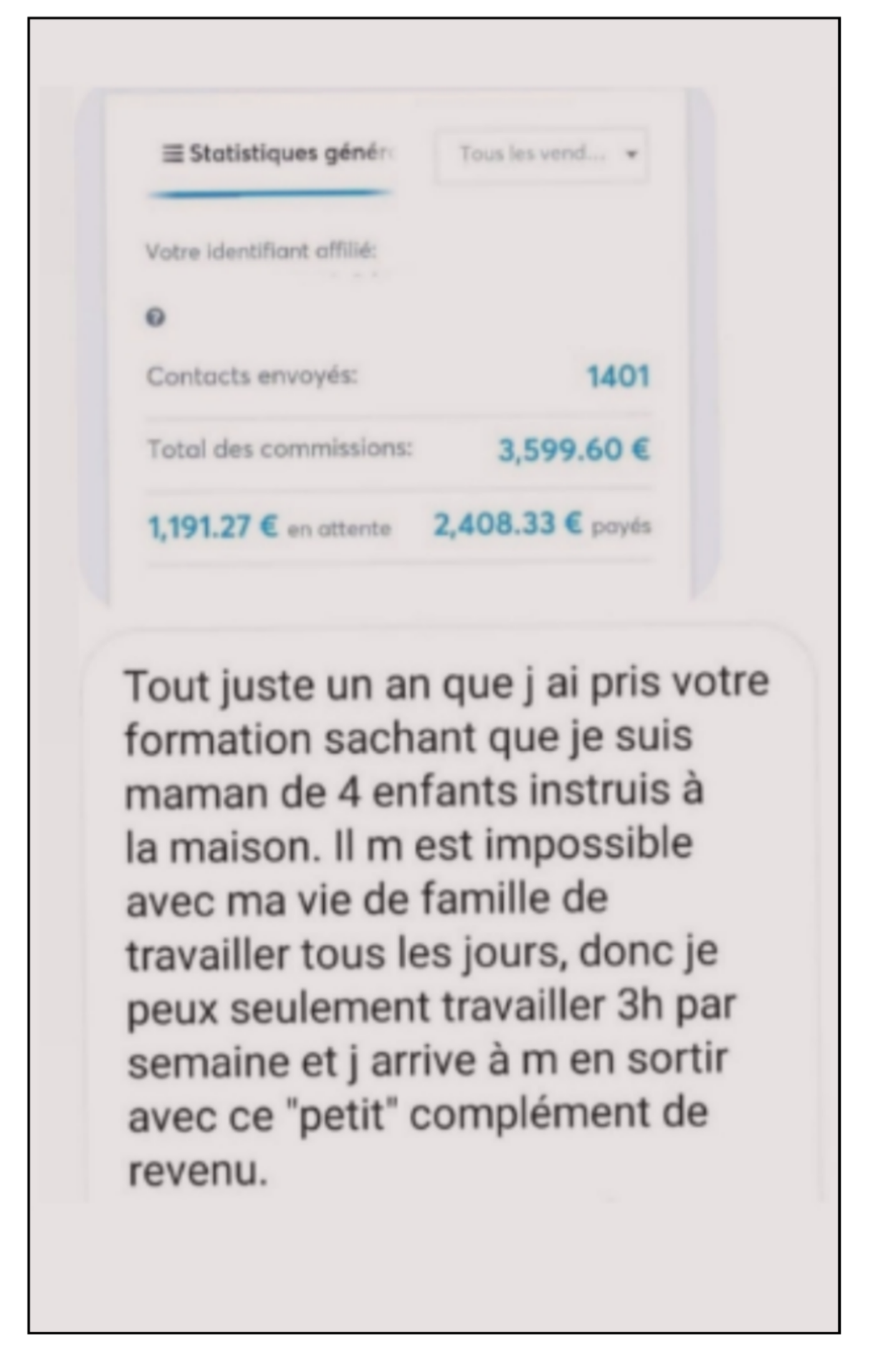 Cette formation, bien que ce ne soit pas la mienne, m'a énormément aidé à monter un business rentable depuis chez moi grâce à l'affiliation. Elle offre un plan d'actions pas à pas, idéal même si tu pars de zéro et sans avoir à dépenser des sommes importantes pour démarrer.